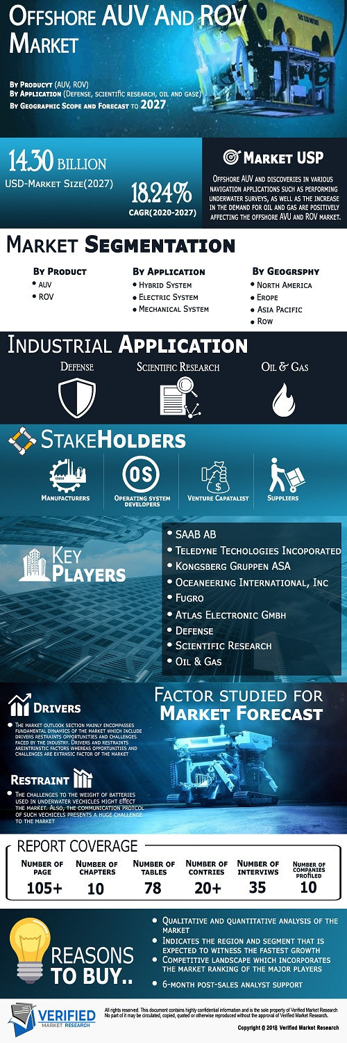 News Offshore AUV and ROV Market By Product (AUV, ROV), By Propulsion System, By Application (Defense, Scientific Research, Oil & Gas, Commercial) smithjenny22119 1,495 views Offshore AUV and ROV Market was valued at USD 3.78 Billion in 2019 and is projected to reach USD 14.30 Billion by 2027, growing at a CAGR of 18.24% from 2020 to 2027. « Previous Offshore AUV and ROV Market