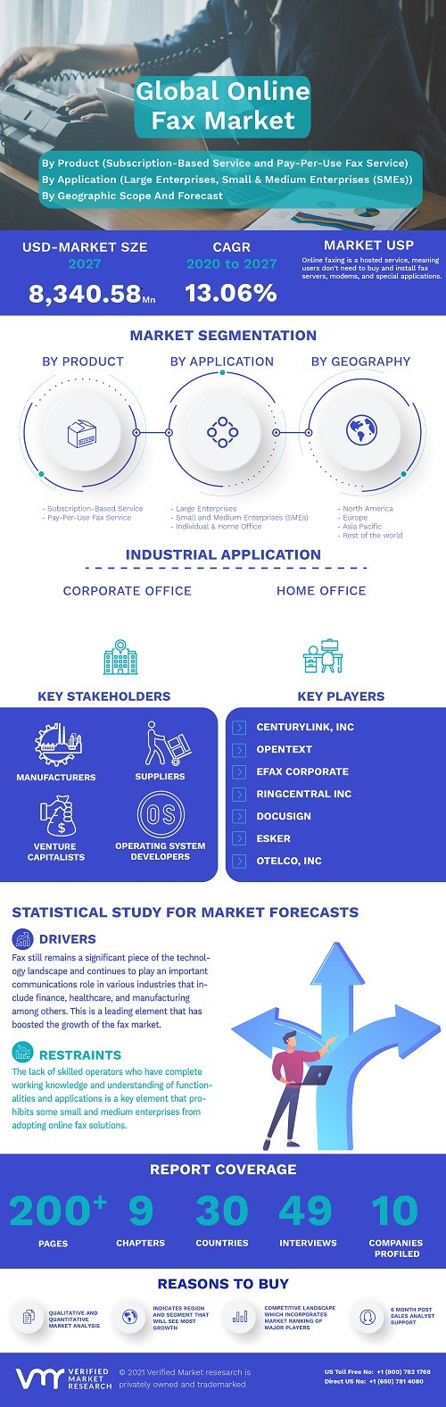 News Online Fax Market Size By Product (Subscription-Based Service and Pay-Per-Use Fax Service), By Application smithjenny22119 1,426 views Online Fax Market was valued at USD 3,174.16 Million in 2019 and is projected to reach USD 8,340.58 Million by 2027. « Previous Online Fax Market