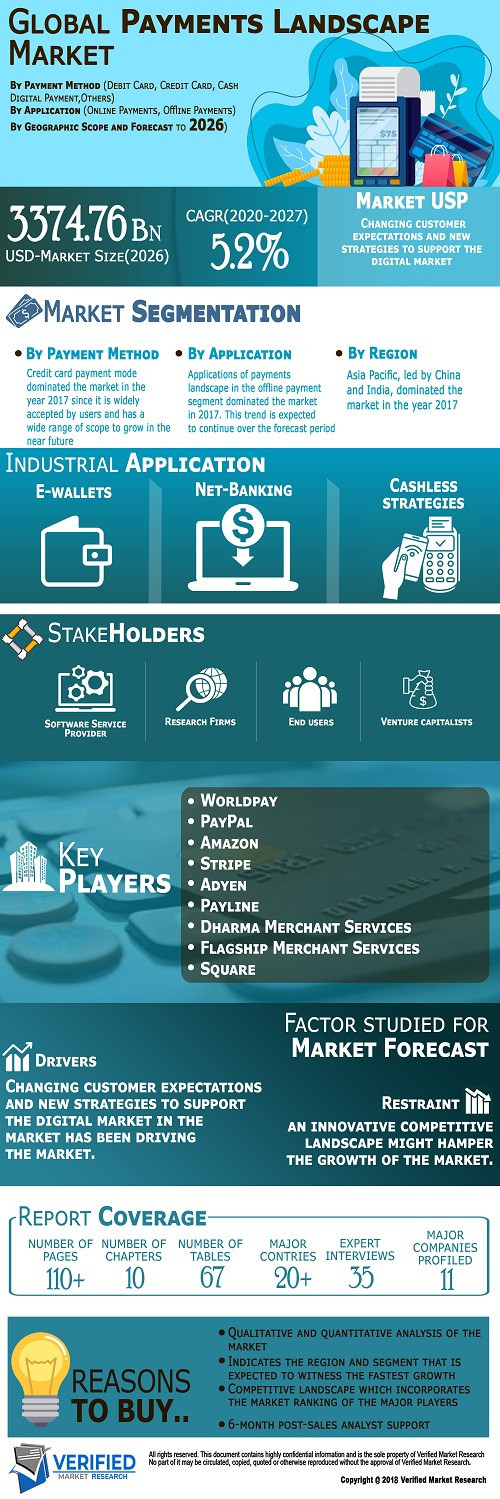 News Payments Landscape Market Size By Payment Method, By Application, By Geographic Scope smithjenny22119 1,002 views Payments Landscape Market was valued at USD 2315.38 billion in 2019 and is projected to reach USD 3374.76 billion by 2027. « Previous Payments Landscape Market