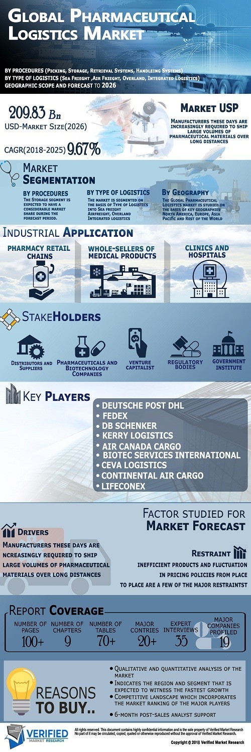 Pharmaceutical Logistics Market was valued at USD 101.91 Billion in 2018 and is projected to reach USD 209.83 Billion by 2026, growing at a CAGR of 9.67% from 2019 to 2026.