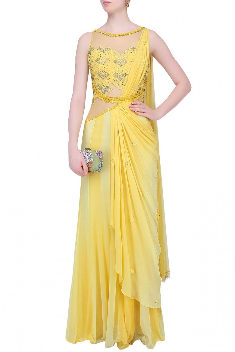 Find the latest design of ready pleated Pre Stitched Saree Online at best price that is curated by famous Indian concept saree creating a contemporary look for every special occasion.