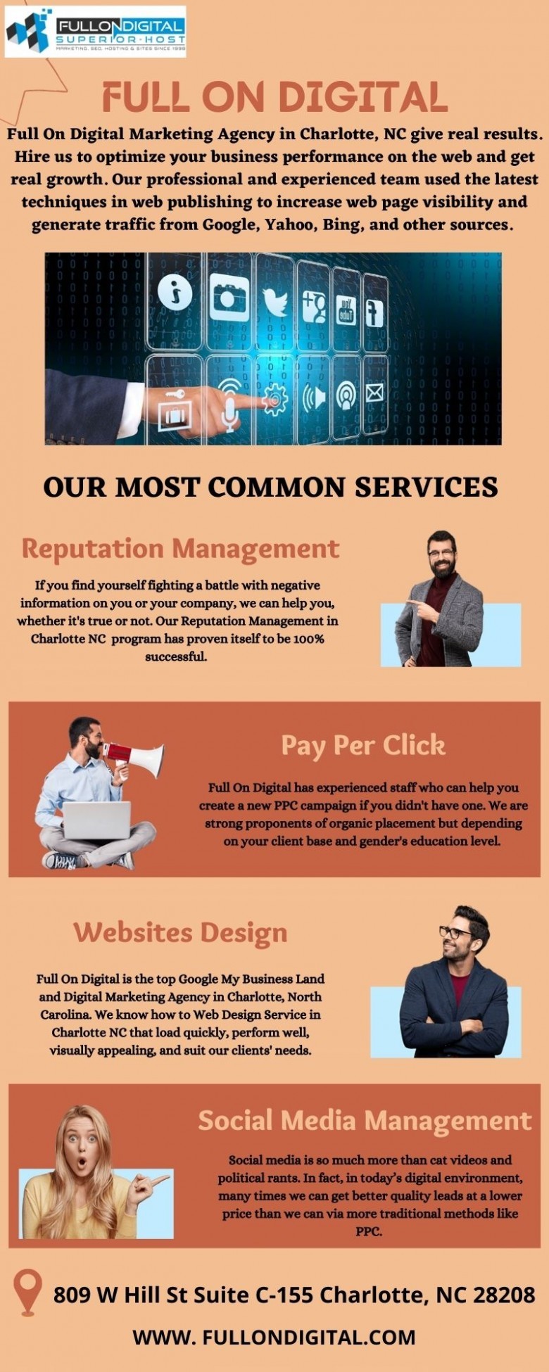 News Reputation Management Charlotte NC | Full on Digital fullondigital 1,276 views Full On Digital has helped hundreds of businesses over the years improve their online reputation; we can help you too! « Previous Charlotte Reputation Management Reputation Management Charlotte NC Reputation Management Charlotte Online Reputation Management Charlotte