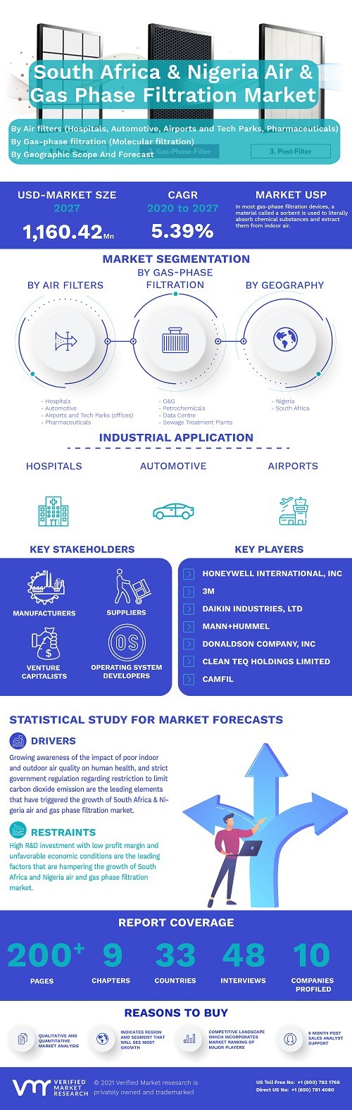 South Africa and Nigeria Air and Gas Phase Filtration Market was valued at USD 741.92 Million in 2019 and is projected to reach USD 1,160.42 Million by 2027.
