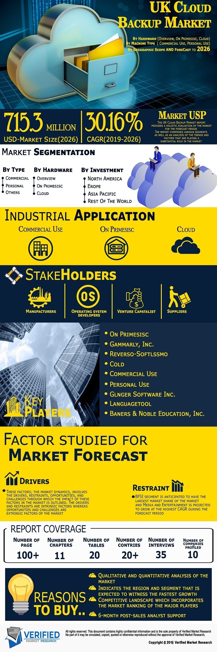 According to Verified Market Research, the UK Cloud Backup Market was valued at USD 93.5 Million in 2018 and is projected to reach USD 715.3 Million by 2026, growing at a CAGR of 30.16% from 2019 to 2026.