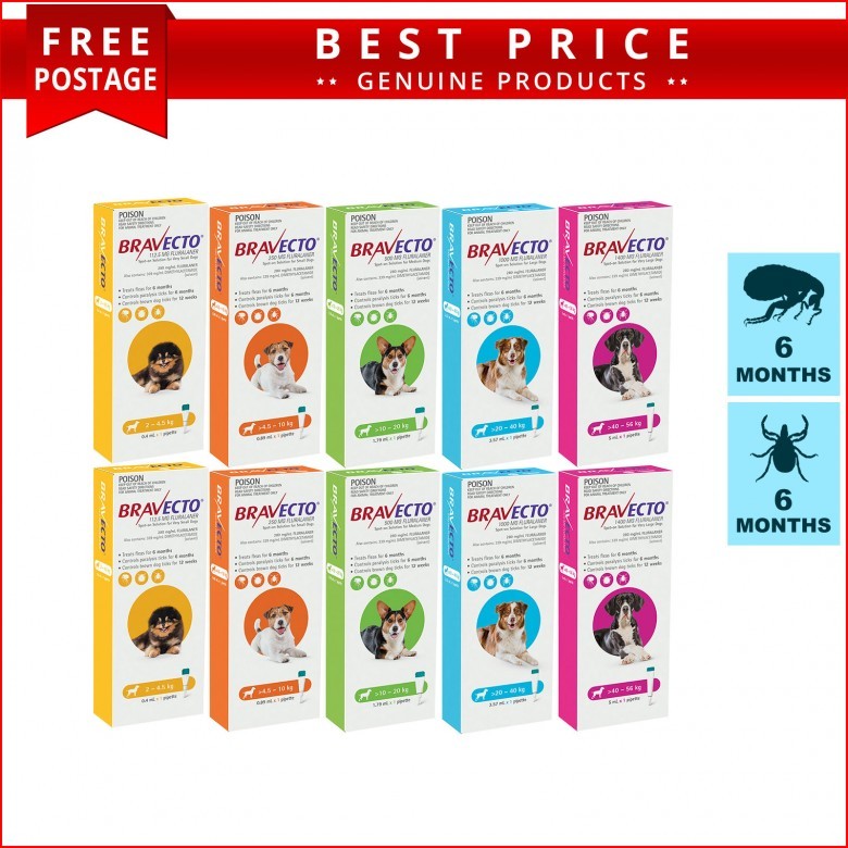 Bravecto Spot-on for Dogs provides even more long-lasting protection. A single, simple application protects your dog against fleas and paralysis ticks for a full six months. It protects against brown dog ticks for 12 weeks. On the market, we offer the best price and fastest delivery.