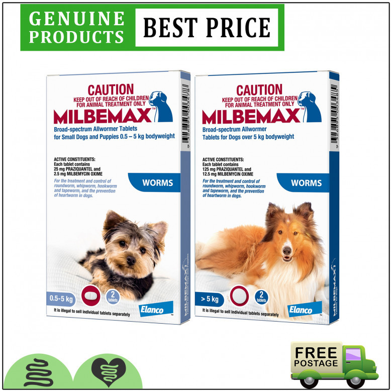 Milbemax Allwormers for dogs is a treatment tablet that helps to control gastrointestinal worms in cats including roundworm, hookworm, tapeworm and whipworm. If administrated monthly, this tablet will help heartworm prevention for your dogs. We provide free shipping throughout Australia as well as low prices.
