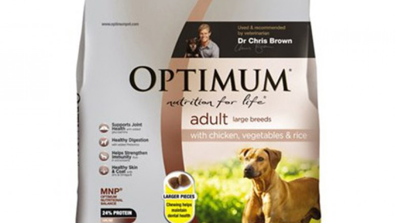 Optimum Adult Large Breeds Chicken flavored meal is the complete and ideal diet for adult dogs. The diet has been formulated with high levels of chicken, which is a natural source of glucosamine. Moreover, it helps in building the cartilage which in turn helps in maintaining healthy joints. Browse our wide range of dog food products online at DiscountPetCare with free shipping.