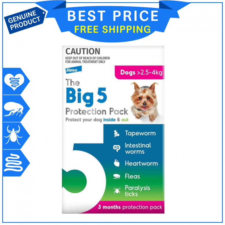 The Big 5 Protection pack includes Interceptor Spectrum chews and Credelio tablets. The bundle packs protect against a wide spectrum of external and internal parasites. This oral treatment controls heartworms, fleas, paralysis ticks, and intestinal worms including tapeworms in dogs. We offer the lowest market price and the quickest delivery.