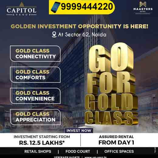 Capitol Avenue in Sector 62 Noida is one among the premium commercial projects that's arising at the IT and company hub of Noida. MASTERS INFRA has recently acquired a billboard land at sector 62, Noida. This commercial plot is at one among the simplest location, it's a corner plot Facing NH24 and it's the gateway to Noida when entring from NH24. Connectivity to Indirapuram, Delhi, Noida and Ghaziabad from this location is superb .