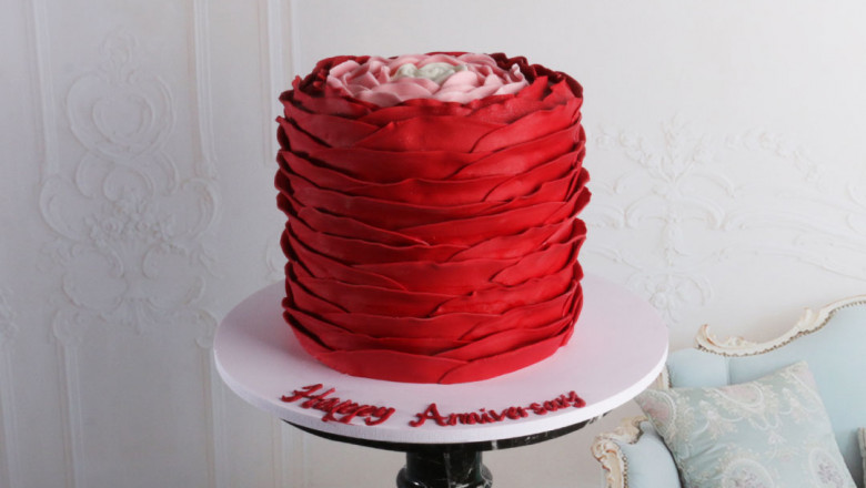 With the addition of a 'Ruffle Rose Cake,' your Anniversary Celebrations will become more modern. This cake is ideal for Weddings, Anniversaries, and Valentine's Day Celebrations.