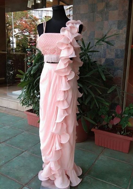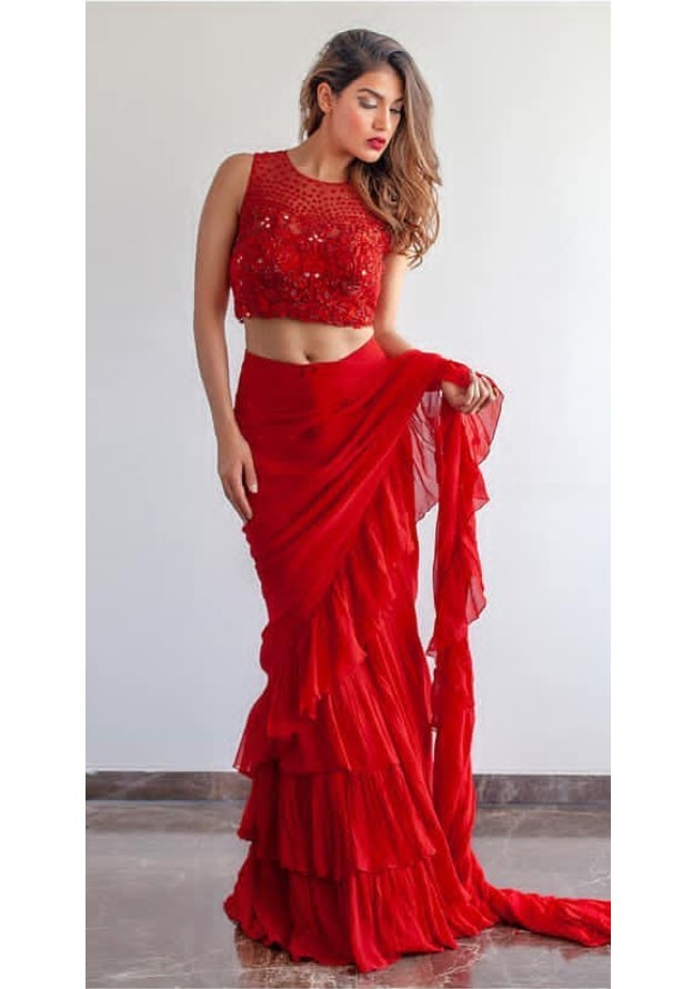 Ruffle Saree is latest trend of traditional Indian saree, now a days every celebrity wear Frill Saree on catwalk and other parties.