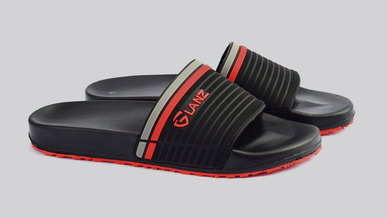 A classic yet stunning double-buckled design by Glanz is ready to uplift your traditional style. This sheer black slipper with an aniline leather upper is accentuated with overlapped double-buckled strap, further lined with PU in-socks for added comfort. The super cushioning EVA midsole is specifically designed to offer a high level of comfort without getting blisters. The outsole is rendered in anti-slip and flexible EVA