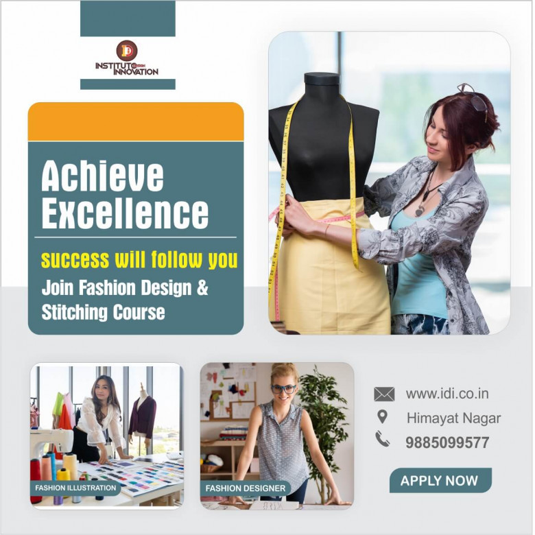 Fashion designing is one of the topmost and highly favorite fields that has got more reputation among young students, because of its demand in the fashion design industry, fashion designing course not only improves your creative skills and knowledge, but also allows you to know about the changing trends in fashion, While Pursuing a fashion designing course you will widely understand the functioning of the fashion industry. Institute Designing Innovation (IDI) is a best fashion designing training institute in Himayat nagar, Hyderabad, which gives high quality education in design industry. Institute offers both, Diploma in fashion Design and Short term courses in fashion design. Fashion design course certification not only brings you some useful benefits, but also allows you to get job in leading fashion industry.