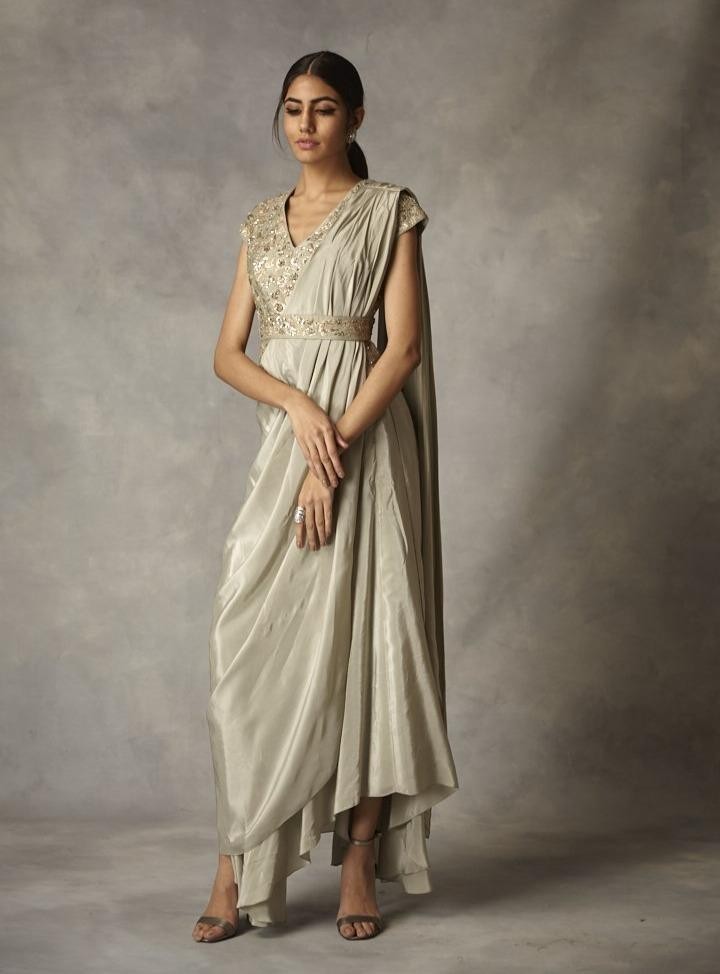 Saree gown is a fusion of the Indian Saree and the western gown. It is a gorgeous silhouette for women who wish to drape a Saree without any trouble of draping and in an effective manner. Pre Stitched Saree is new concept of traditional Indian saree, Indian women have always remained fashionable in the traditional ethnic wear Saree.