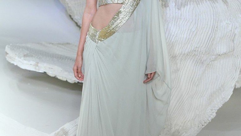 Saree gown is a fusion of the Indian Saree and the western gown. It is a gorgeous silhouette for women who wish to drape a Saree without any trouble of draping and in an effective manner. This hassle free saree cum gown outfit, also known as pre-stitched saree can be zipped up in a jiffy without worrying about getting the pleats right!