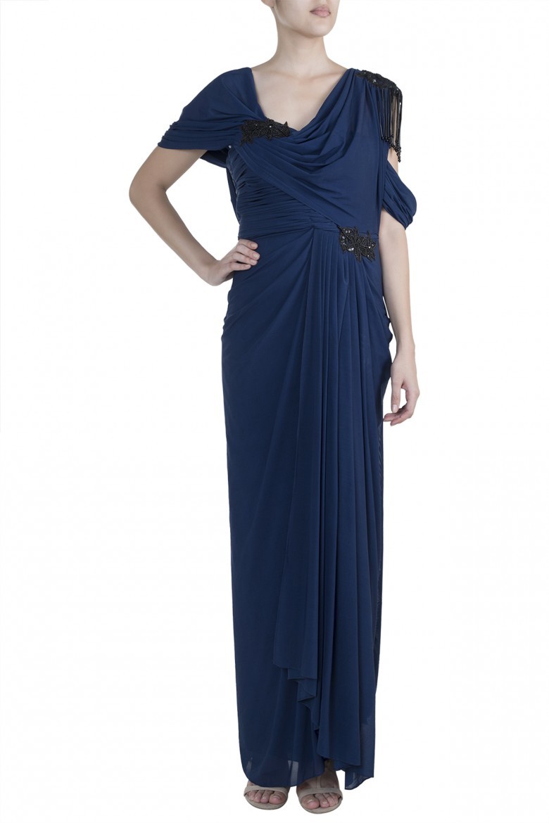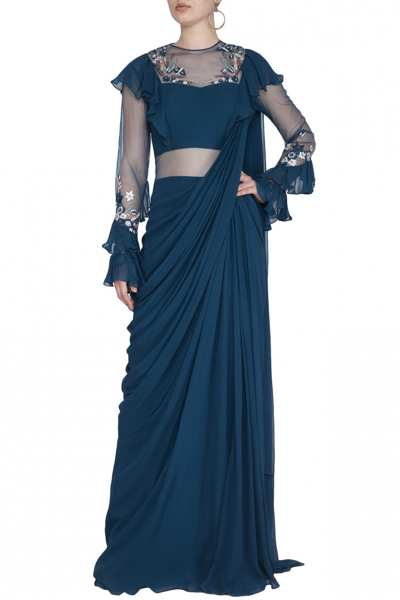 Designer Saree Gown in new designs that are stitched saree gown that combination of gown and saree that similar to pre pleated saree and pre stitched saree gown. today we want to easy to carry dress with looks different so you must try saree gown. and concept saree also a best option for cocktail parties and special occasion.