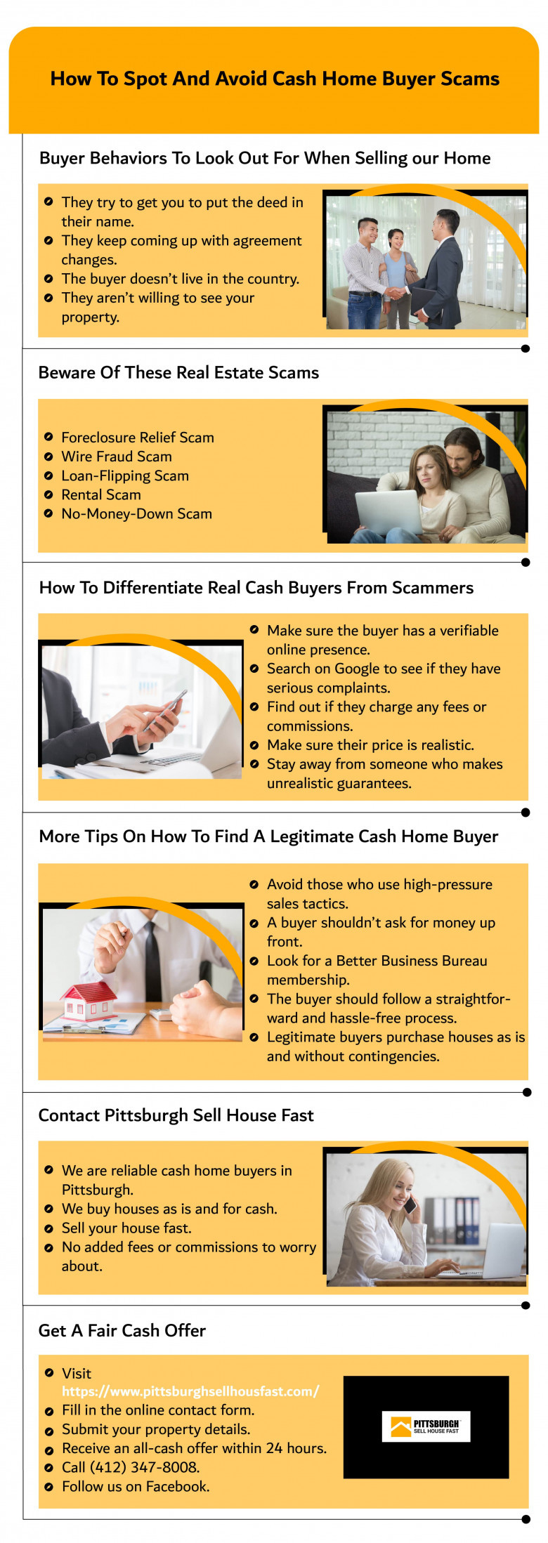Beware of scammers who prey on home sellers and swindle their hard-earned money. At Pittsburgh Sell House Fast, we help homeowners sell their houses fast without fees or commissions. Contact our trusted cash home buyers in Pittsburgh to learn more about our transparent process.