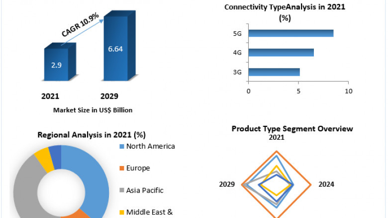 In-vehicle Infotainment Market size was valued at USD 2.9 Bn. in 2021 and the total revenue is expected to grow at 10.9% of CAGR through 2022 to 2029, reaching USD 6.64 Bn.