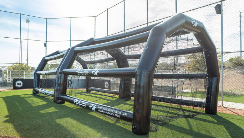 Our Commercial grade Inflatable Batting Cages are not made like bounce houses with continual blowing air. These cages are heat sealed, inflate in 10 minutes, and are the only cages on the market with real American Made baseball academy netting.