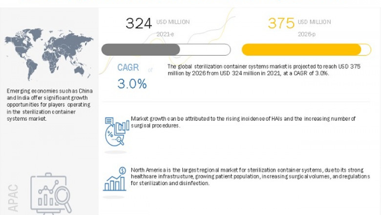 the Sterilization Container Systems market is projected to reach USD 375 million by 2026 from USD 324 million in 2021, at a CAGR of 3.0% during the forecast period.. according to a new report by MarketsandMarkets™.
