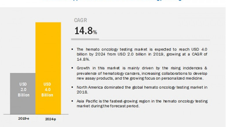 According to the new market research report "Hemato Oncology Testing Market by Product & Services (Assay Kits, Services), Cancer (Leukemia (Acute Lymphoblastic, Acute Myeloid), Non-Hodgkin's Lymphoma), Technology (PCR, NGS, IHC), End-User (Clinical Laboratories, Hospitals) - Global Forecast to 2024", published by MarketsandMarkets™, the Hemato Oncology Testing Market is projected to reach USD 4.0 billion by 2024 from USD 2.0 billion in 2019, at a CAGR of 14.8%.