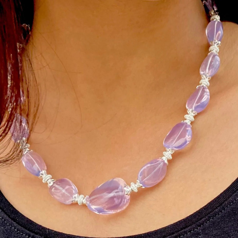 Lavender Quartz Smooth Nuggets Shape Gemstone Beads Necklace