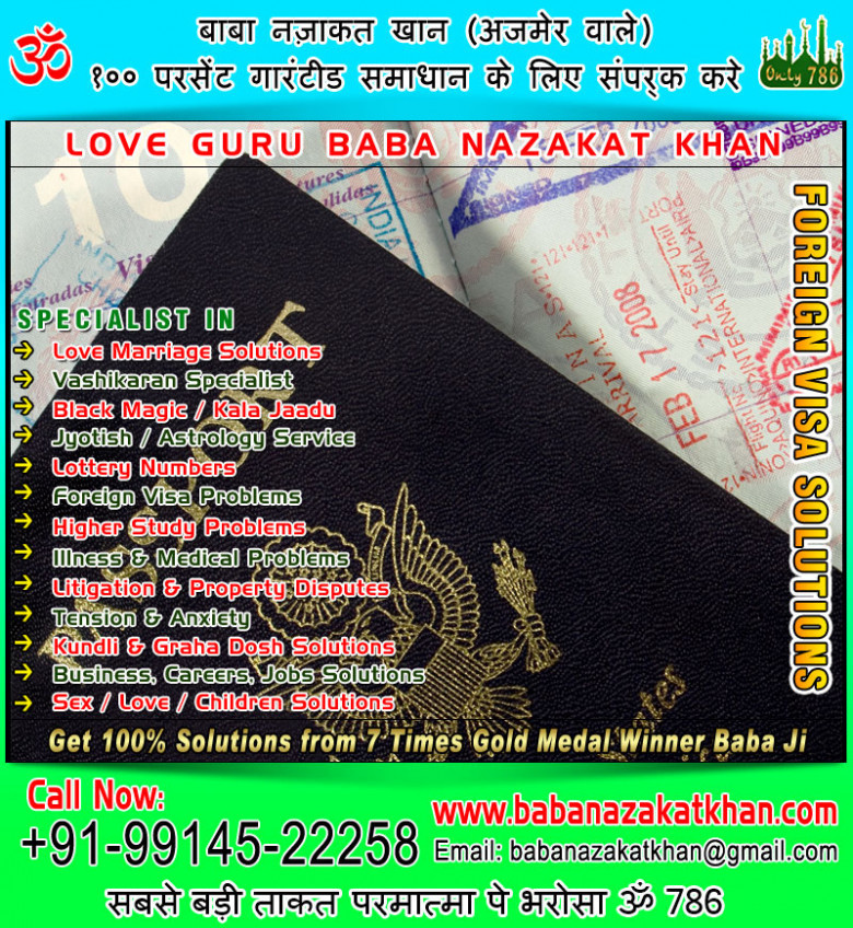 Visiting any foreign land is a dream for many people around. We all at some phase of life want to visit different country for different purposes. There can be a need to leave motherland for business, for a job or to change lifestyle. Also there are many students who want to perceive further higher study education in a foreign land. Get Advice from Baba Nazakat Khan Ji regarding your foreign visa with astrology, jyotish and vashikaran Specialist in India