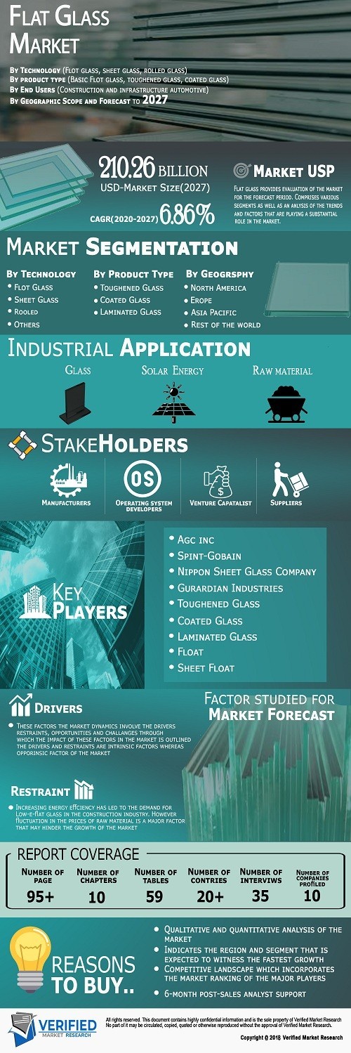 Flat Glass Market was valued at USD 136.05 Billion in 2019 and is projected to reach USD 210.26 Billion by 2027, growing at a CAGR of 6.86% from 2020 to 2027.