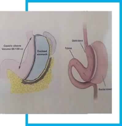 This surgery is performed by removing approximately 80% of the stomach. The remaining stomach looks like a banana or a sleeve of a shirt and hence called as ‘sleeve’.