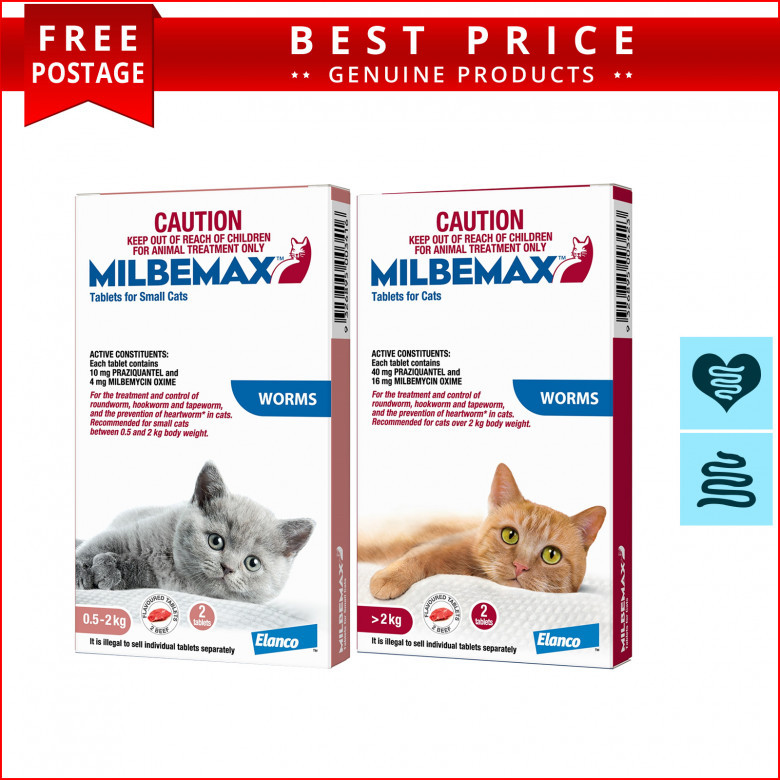 Milbemax for cats is a beef-flavoured tablet used as a broad-spectrum Allwormer for worms in cats. It eliminates, manages, and treats roundworms, hookworms, and tapeworms in cats. It eliminates intestinal worms in their juvenile and adult stages, shielding the cats from diseases. The tablets also work as a preventative for heartworm disease. We offer the lowest market price and the quickest delivery.