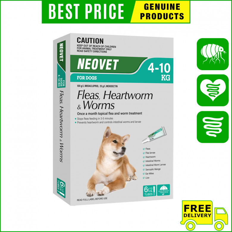 Neovet for Dogs is a monthly spot-on treatment for flea, worm, and heartworm protection. It eliminates flea larvae, fleas, lice, mites, and sarcoptic mange shortly after application. And also protects against most major intestinal worms in dogs, such as hookworm, roundworm, and whipworm, including heartworm. We offer free shipping across Australia as well as low prices.
