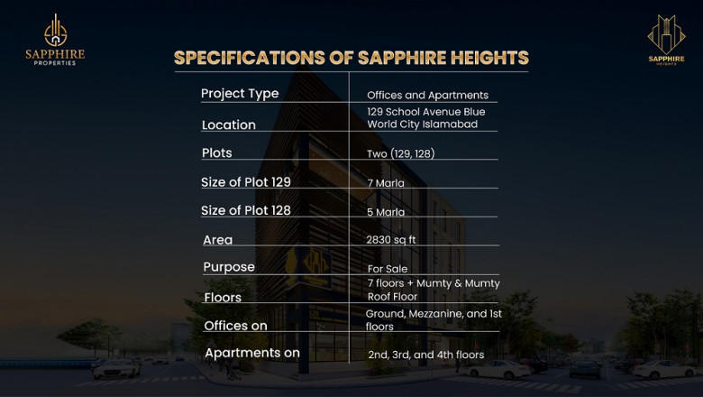 Sapphire Heights is a premium quality unit with high specifications and a modern design. The floor plan of the projects includes 2 plots, which are 129 and 128. In both the plots, there is 1 basement/lower ground floor, 1 ground floor, 1 Mezzanine floor, 1st floor, 2nd floor, 3rd floor, 4th floor, Mumty Floor, and Mumty roof floor.