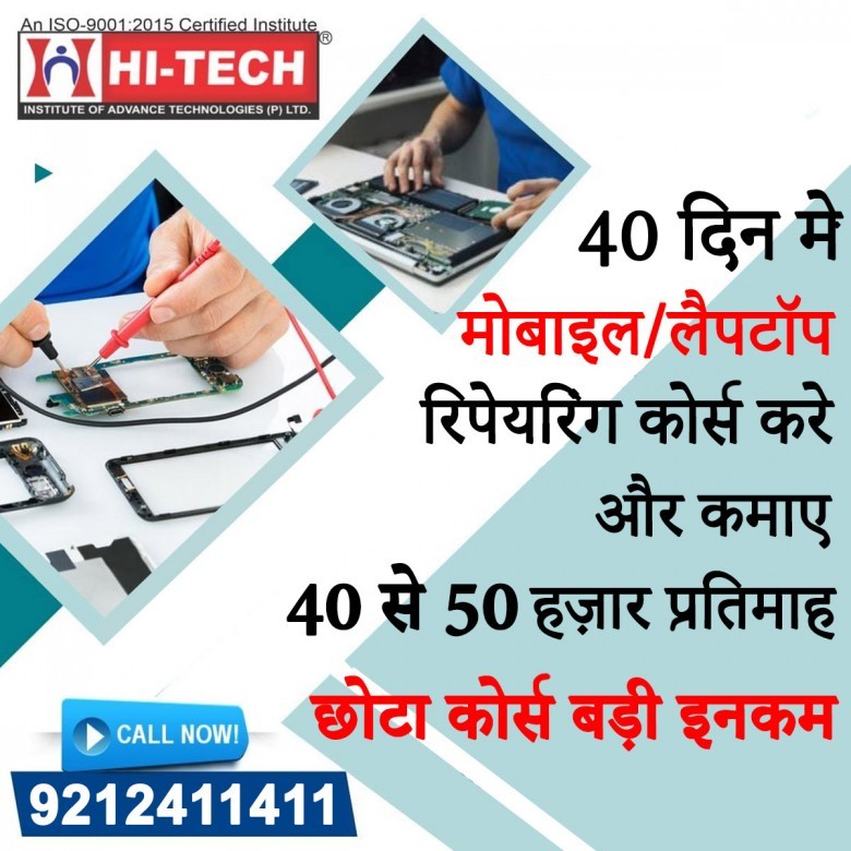 Always join the best laptop and mobile repairing institute in Delhi that name known as Hitech Institute. It also provides a free repairing tool kit and job placement support along with the course. By doing this course, you can easily earn good money per month, and you can also start your own laptop and mobile repairing business. This institute has 17 years of experience. Call here for more information 9212411411.