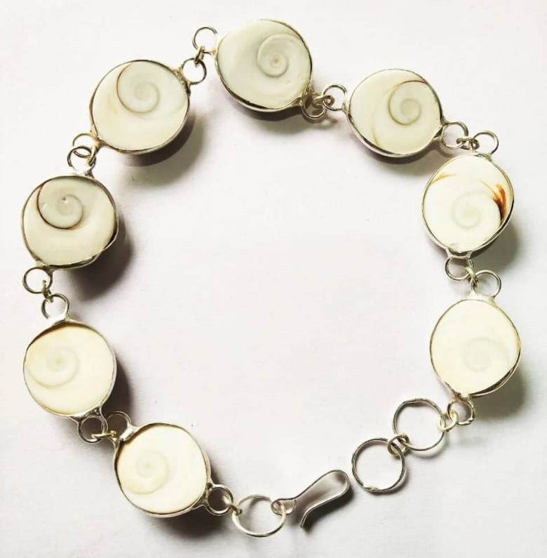 Gomti Chakra Shell Bracelet is a Spiritual white coloring shell stone with small circles on one side and Chakras on another side found in Gomti River Dwarka, Gujarat. which appease to a Goddess Laxmi known as the ”Goddess of Wealth” and is also a divine weapon of ”Lord Vishnu” which blesses a wearer or devotee with happiness , prosperity and luck.