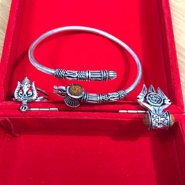 Rudraksha Trishul Damru Designer Oxidized Silver Kada Kadas Bracelet Unisex Cuff Bracelets for Men & Women Boys OM God pendant Latest stylish bracelets. Five Mukhi Rudraksha keeps the person soul and mind calm and relaxed. It removes all kinds of stress and anxiety and regulates the blood flow. The person get rids of all his/her sorrows and sin and It cures Lever, Gallbladder, Prostate, Pituitary glands and Blood pressure disorders.