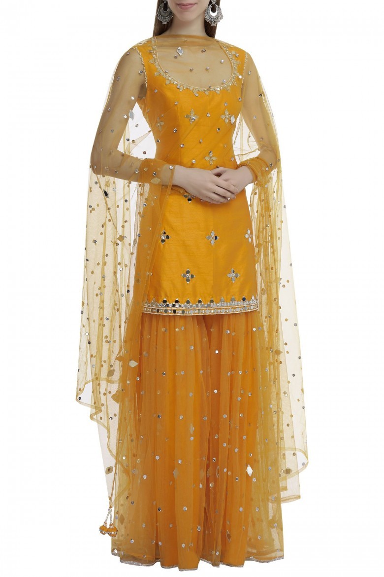 Sharara suits basically is a three piece dress as Indian ethnic wear that comes with a kurta, sharara pant and dupatta.