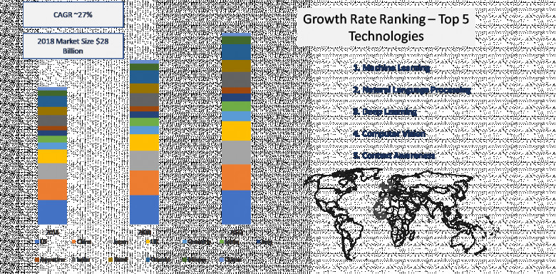 The Artificial Intelligence (AI) Technology Market size was valued at US$ 28 Bn in 2018 and is expected to grow at a compound annual growth rate (CAGR) of 25% for the forecast period ending 2023 reaching a Market value of US$ XX Bn.
