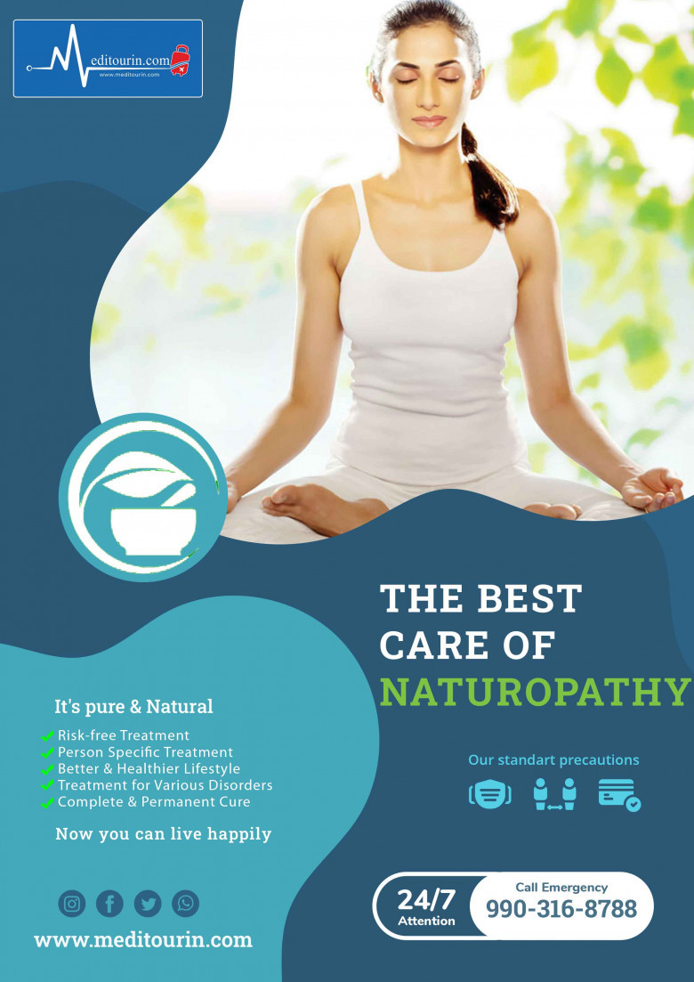 Meditourin is a best destination for naturopathy treatment. Naturopathy is a natural healing technique using the healing powers of nature. Get healed in the arms of nature at Best Naturopathy Centers In India. Find the best Naturopathy Hospitals and Centers from our free website portal. Speak to our representative: +91-99031 68788
