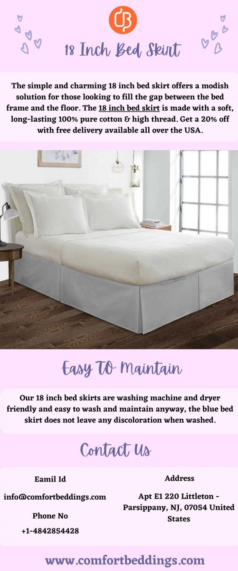 Buy a Suitable Size 18 Inch Bed Skirt at Comfort Beddings. View this info graph & get the right information. This bed skirt easily fits & maintains. Our bed skirts change your bedroom style & give you a luxurious look.