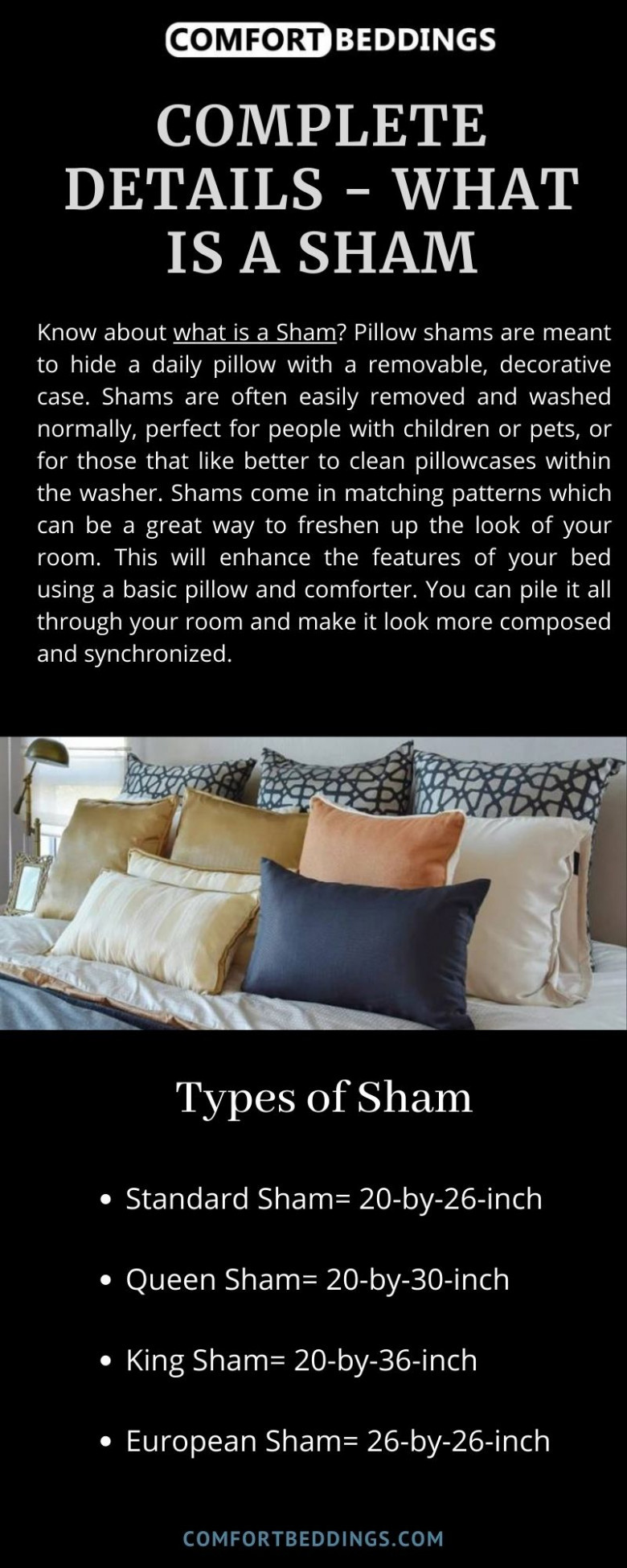 If you want to know about What is a Sham, so view this informative info graphic that helps for understanding sham quality & types. Normally shams come in 4 types with different sizes that you can easily select according to their size.