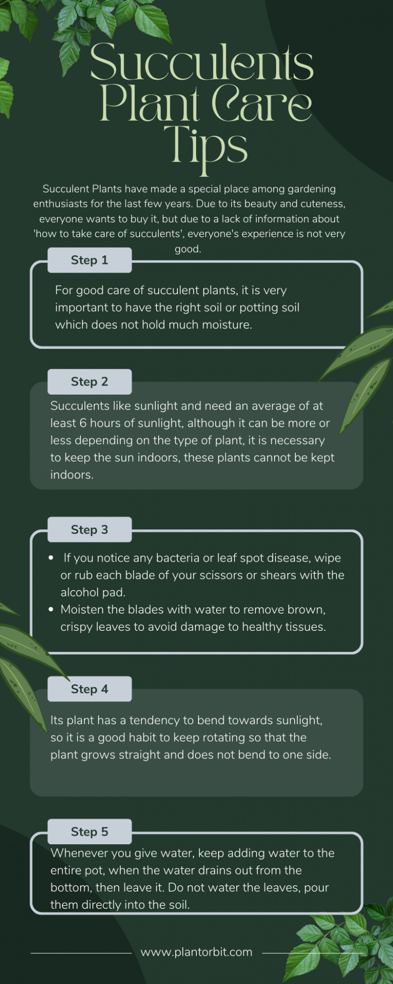 Succulents are plants that have adapted to dry, rocky areas and can tolerate very poor soil conditions. They grow best in full sunlight but will tolerate partial shade if the soil is rich enough.