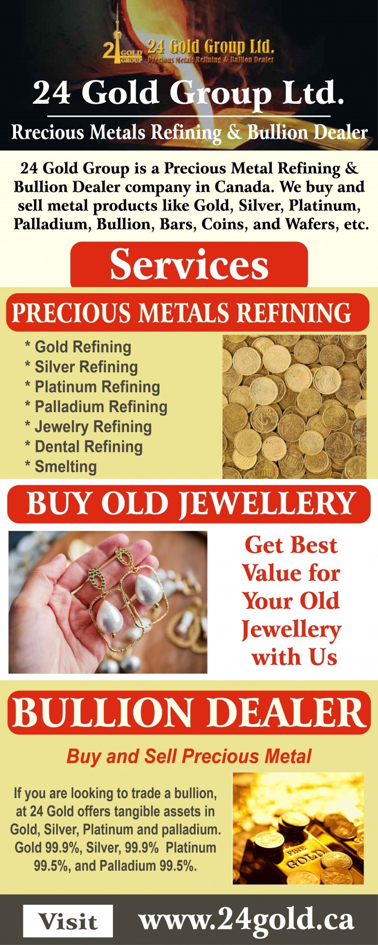 24 Gold Group is a Precious Metal Refining & Bullion Dealer company, which provides services in Toronto, Ontario, and Canada. 24 Gold is the best place to buy scrap gold in Canada. We provide precious metals refining such as Gold refining, Silver refining, Platinum refining, Palladium refining, Jewelry refining, etc. To know more, contact us at +1 (855) 214 2442 or visit our website