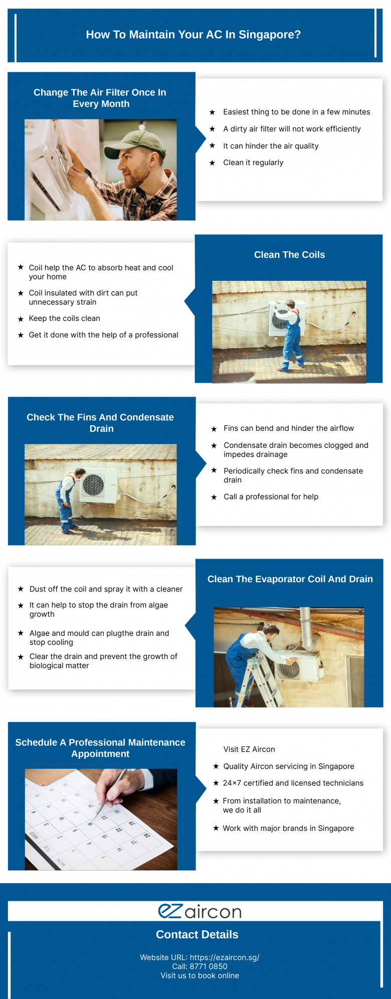 Use these tips to make your air conditioner in proper working condition. At EZAircon, our certified technicians offer superior Aircon servicing in Singapore. Visit https://ezaircon.sg/ to schedule an appointment now.
