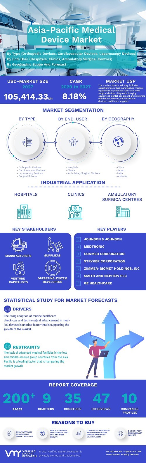 News Asia-Pacific Medical Device Market Size By End-User smithjenny22119 975 views Asia-Pacific Medical Device Market was valued at USD 58,795.58 Million in 2019 and is projected to reach USD 105,414.33 Million by 2027, at a long-term CAGR of 8.18% from 2020 to 2027. « Previous Asia-Pacific Medical Device Market