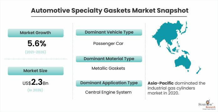 The Automotive Specialty Gaskets Market is expected to grow at a healthy CAGR of 5.6% during 2021-2026, taking the market to US$ 2.3 billion by 2026.