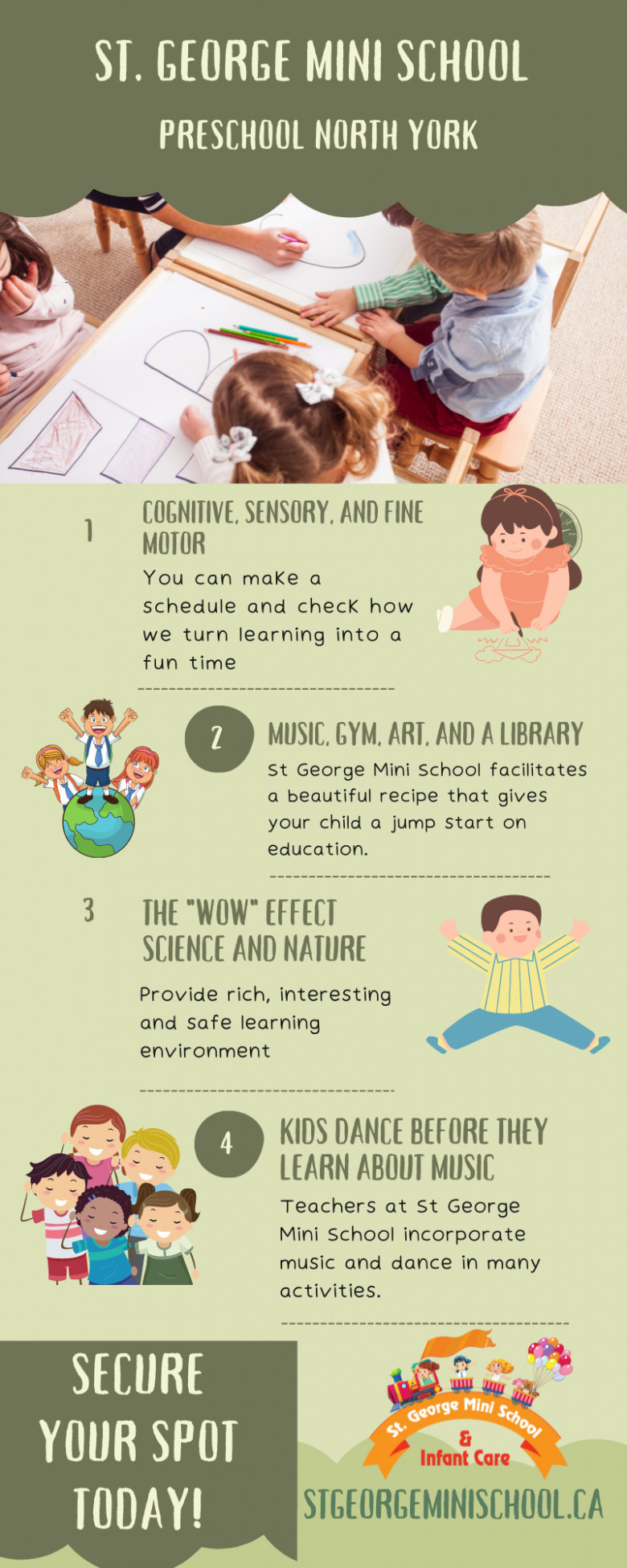 The Preschool North York is surrounded by parks, schools, and residential homes. Our qualified teachers and staff will guide your child to become confident learners for their next school, and curriculum planning is responsive to children's strengths, interests, and emerging needs.
