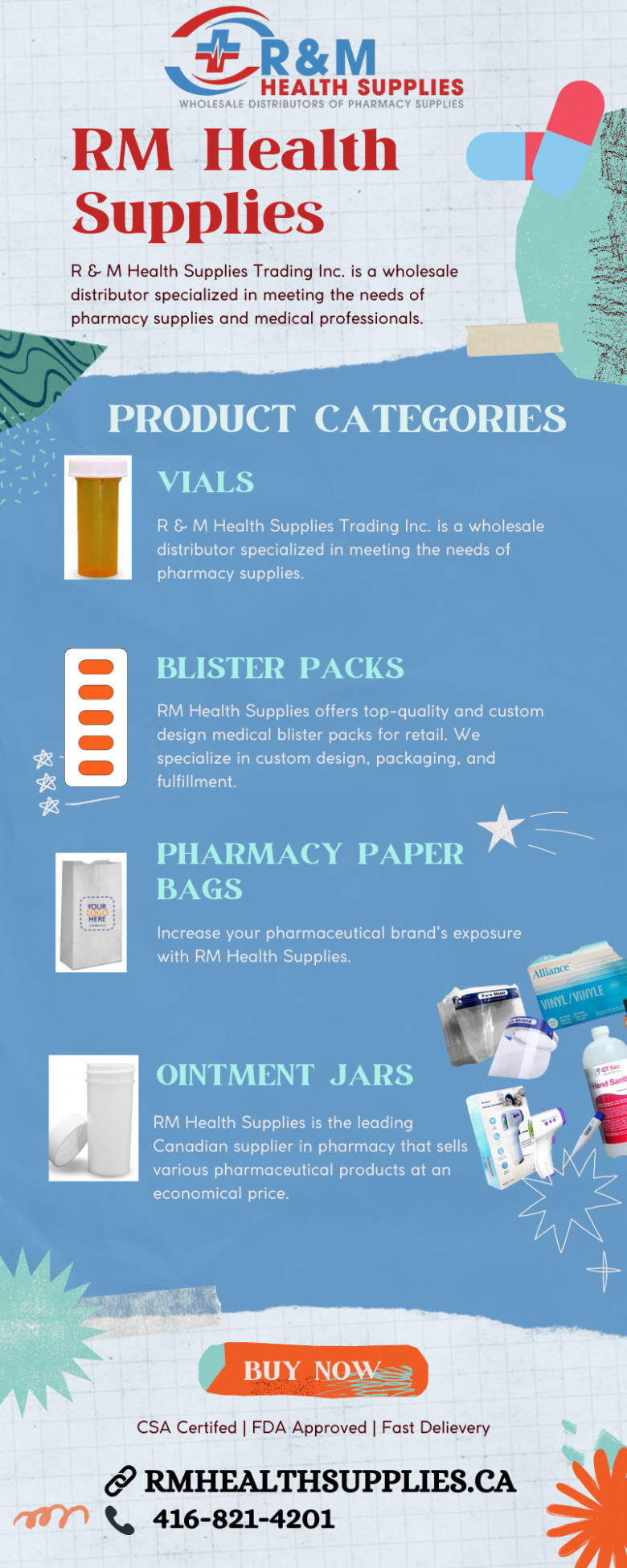 RM Health Supplies' main goal is to deliver high-quality packaging at a reasonable price. Our primary products include custom pharmacy paper bags, vials and blister packs, paper and plastic prescription bags & many more.