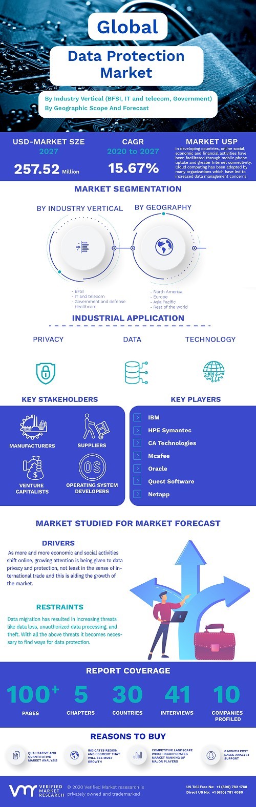 Data Protection Market Size By Industry Vertical (BFSI, IT and telecom, Government and defense, Healthcare, Manufacturing, and Others), By Geographic Scope And Forecast