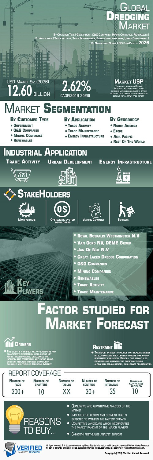 News Dredging Market by Customer Type, by Application (Trade Activity, Trade Maintenanceevelopment) smithjenny22119 1,299 views Global Dredging Market was valued at USD 10.30 Billion in 2018 and is projected to reach USD 12.60 Billion by 2026, growing at a CAGR of 2.62% from 2019 to 2026. « Previous Dredging Market