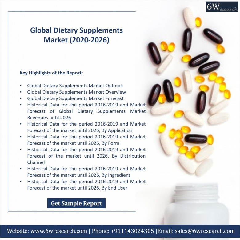 According to 6Wresearch, Global Dietary Supplements Market size is anticipated to register growth during 2020-2026. Surging investment in the development of dietary supplements is driving the development of the market. Moreover, increasing purchasing power of the consumers coupled with rising penetration towards a healthy lifestyle is adding to the development of the market. The outbreak of the COVID-19 has impacted various industries along with the market. The Global Supplements Market experienced an upsurge due to the rising demand for immunity-boosting supplements to fight against the disease.